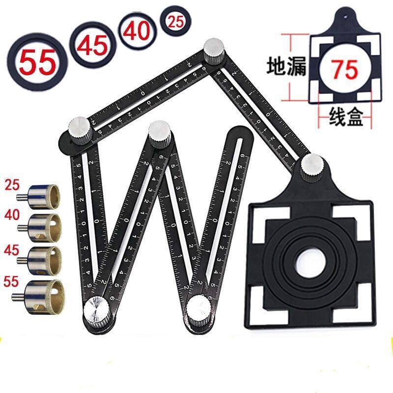 Four-fold ruler Six-fold ruler Universal angle ruler Multi-function folding special-shaped ruler Aluminum alloy tile universal drilling positioning