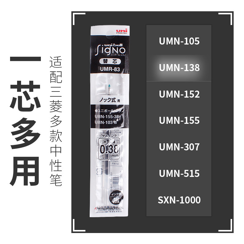 Japanese boxed imported UNI Mitsubishi Refill UMR-83 85N Middle Sex Pen Core Suitable for UMN-155 Sort by Motion Middle Pen Student Exam Brush Inscriptions Black Water-based Pen Refill 0 38