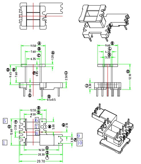 EE13 communication skeleton transformer skeleton magnetic core coil skeleton vertical 5 2 2 pins ten cover pack
