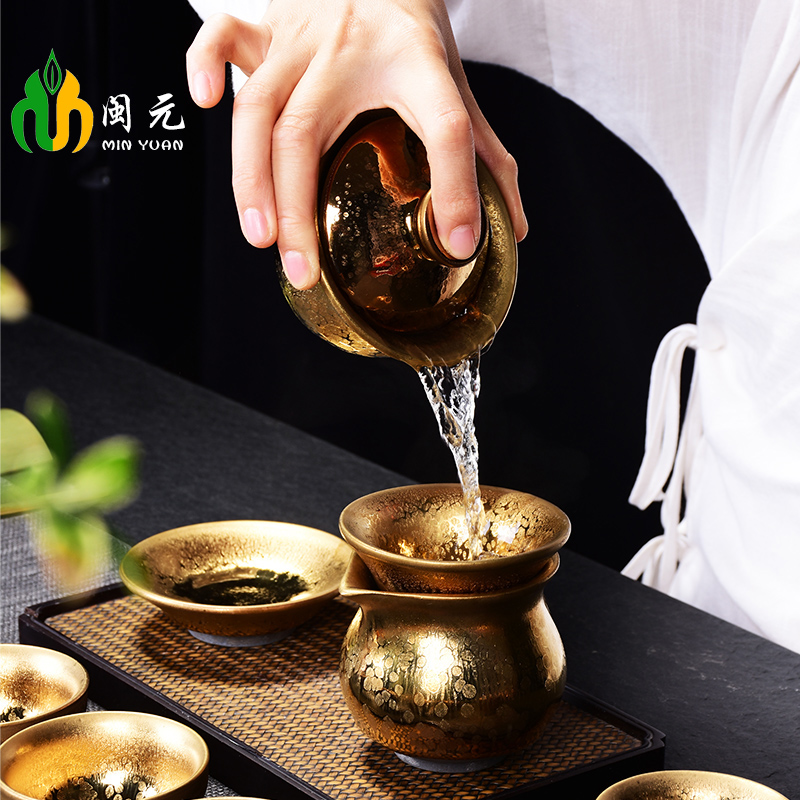 Fujian Yuan Iron tire Jianzhan Gilt tea set set Household Kung Fu Tea oil drops Yao change Tianmu Lamp Teapot ceramic set
