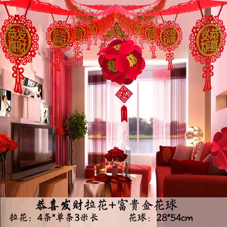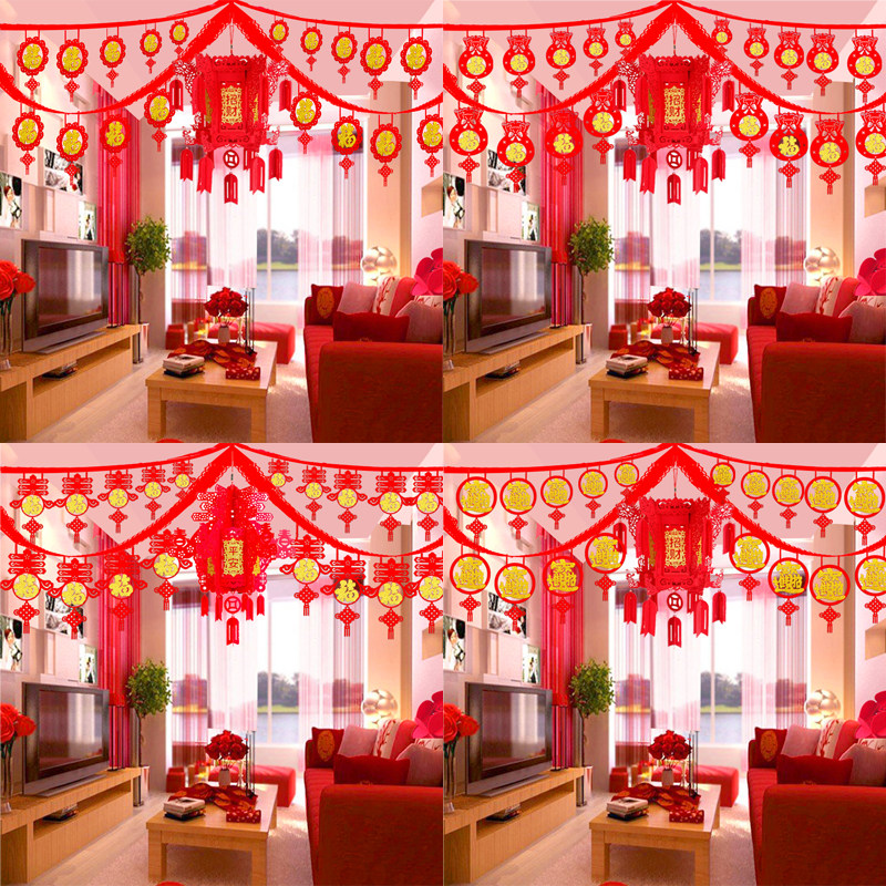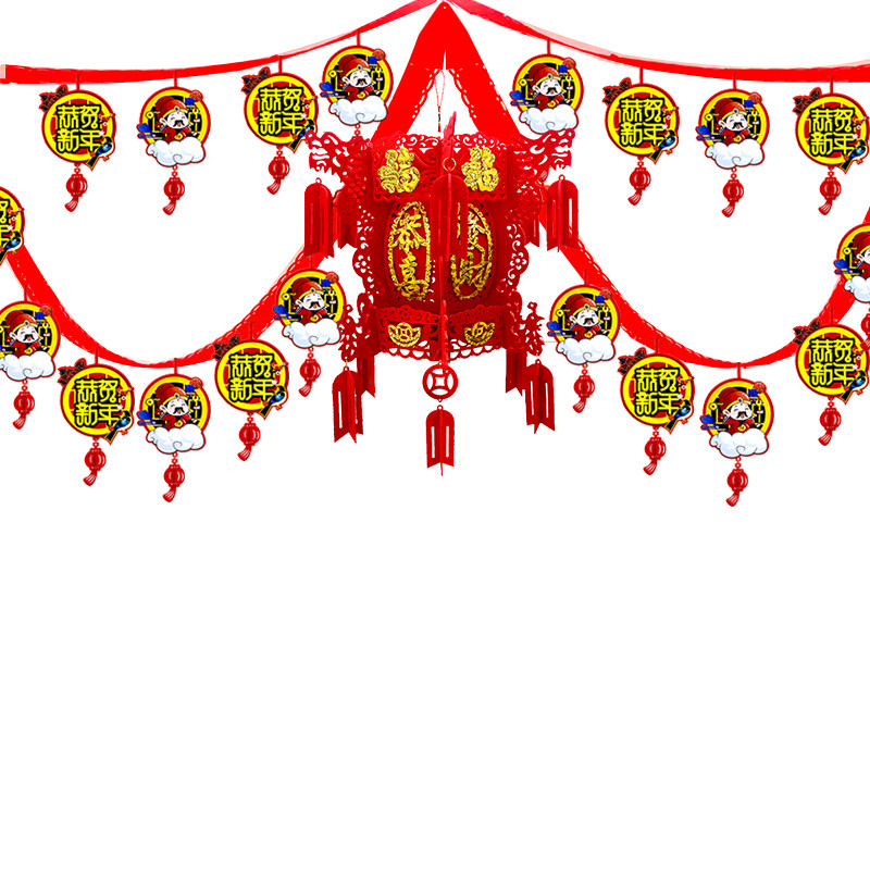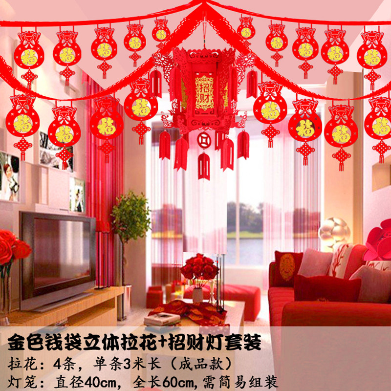 New Year Suite Festive Decorations Living-room Rooms Fu Calligraphy laflower Chinese knot Hanging Accessories Mall Wave Banner Spring Festival arrangements