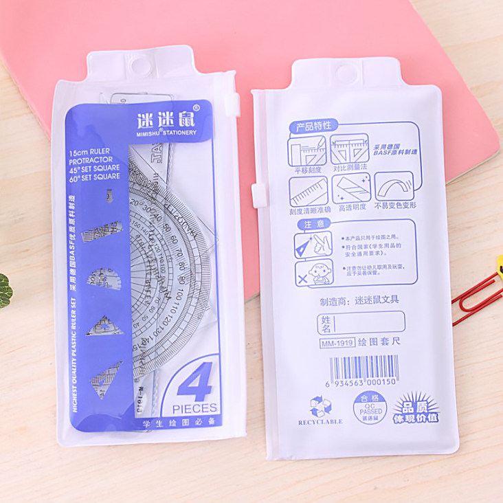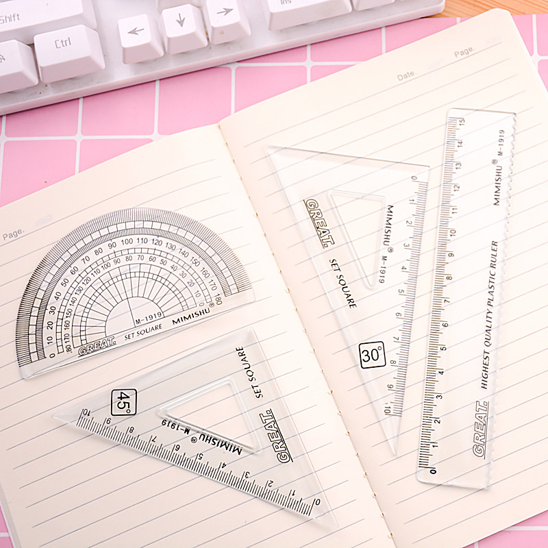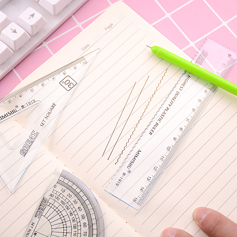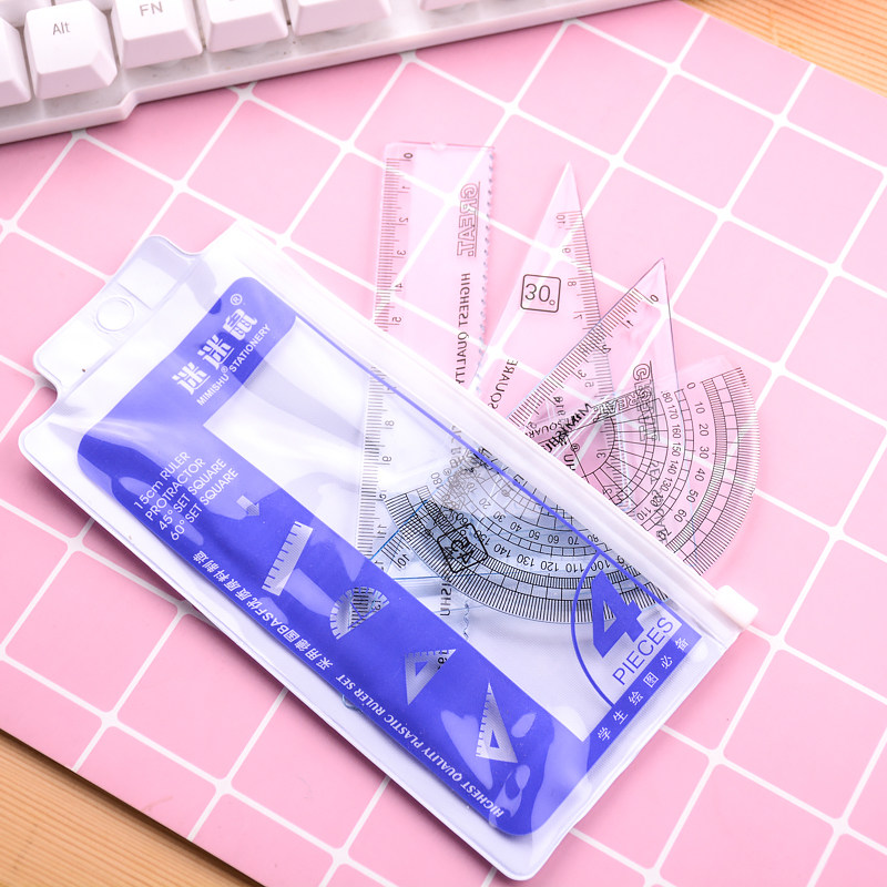 Student cover ruler four pieces of kit brief cute ruler with wave suit Practical elementary school students learn stationery supplies batch