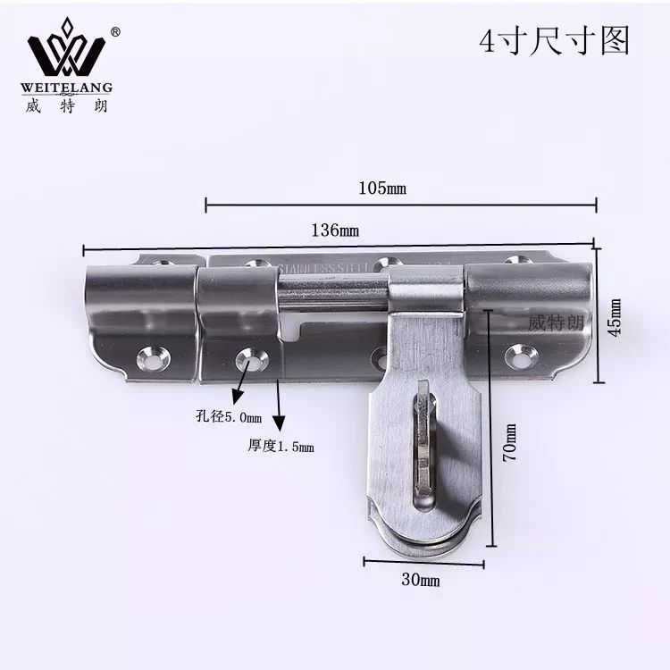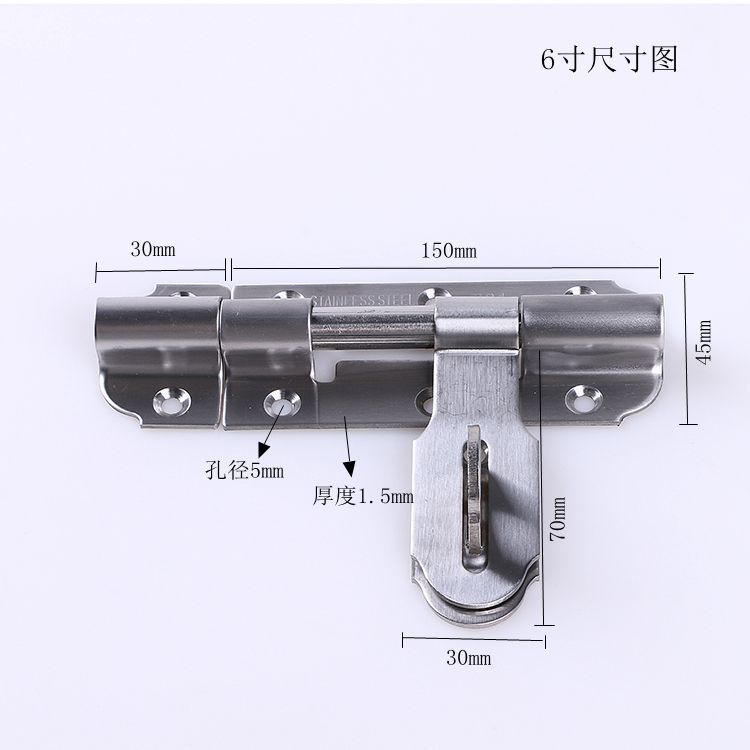 Factory direct 304 thick stainless steel latch anti-theft door door door bolt cow nose lock left and right latch