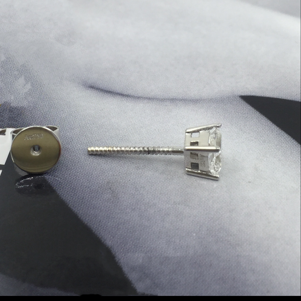 Fu daisheng white 18K gold 50 points 1 carat 120 natural diamond earnail princess square diamond earshot male and female