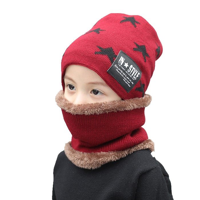 Children's hat autumn winter boy girl gush thickened with warm and protective ear baby hat scarf two sets of suit damp