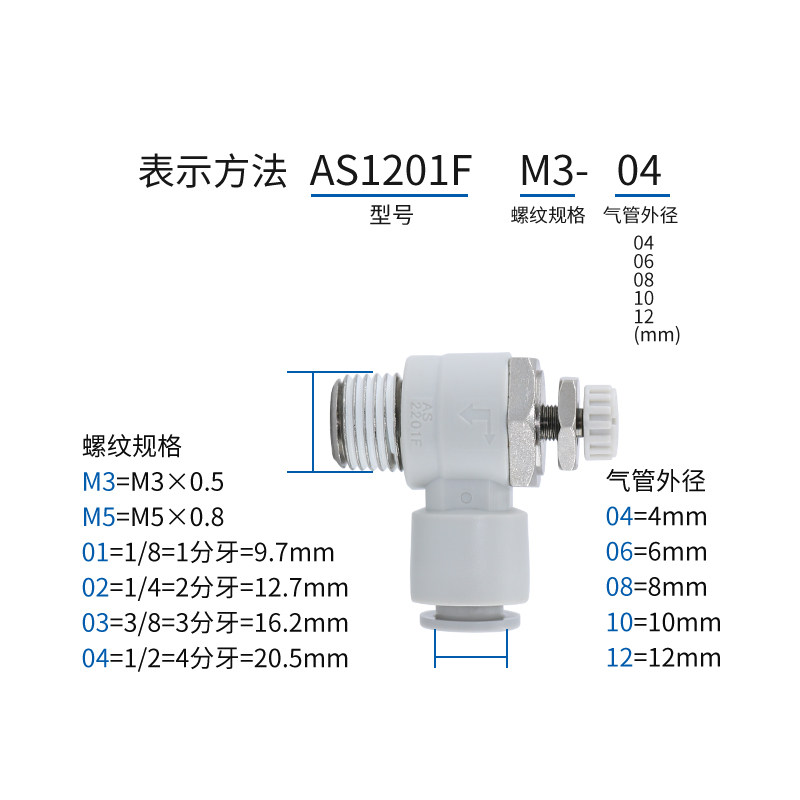 SMC type AS1201F AS2201F M3 M5 01 02-03 04 06 speed control throttle valve cylinder connector