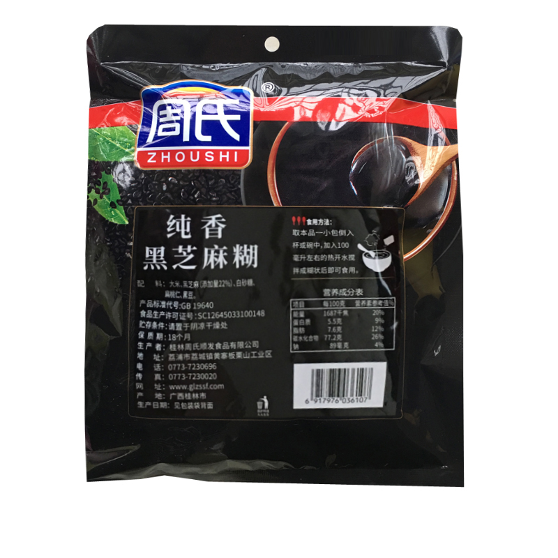 Zhou's Original Taste Pure Fragrant Black Sesame Seeds Burnt 210g Manual grinding of five Valley Meal Powder Nutritional Instant Breakfast Foods