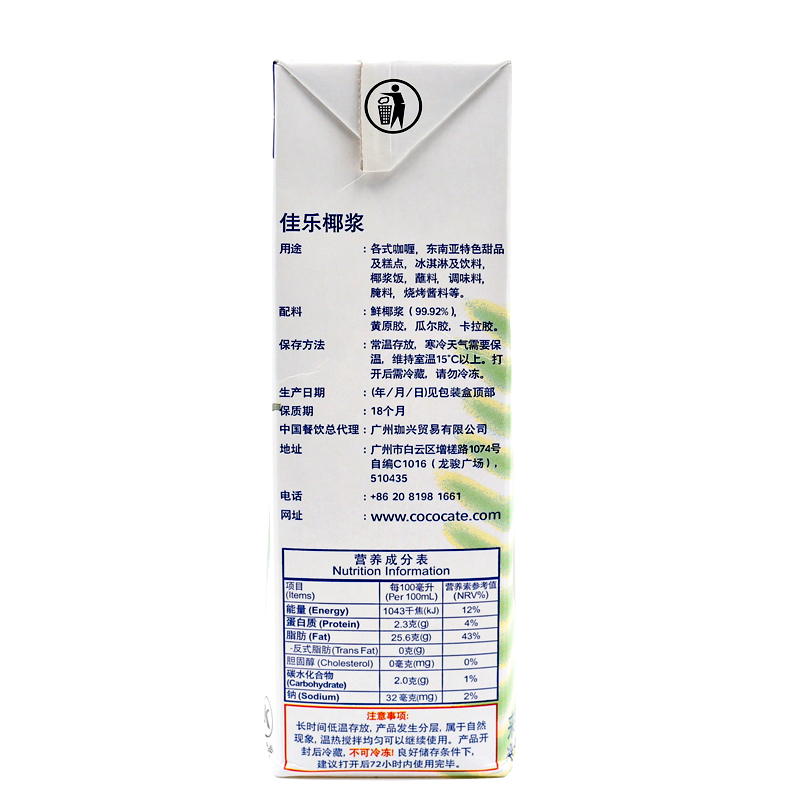 Indonesia imported Jiale pure thick coconut milk 1L Kara coconut milk really fragrant coconut milk sago dew Thai curry raw materials