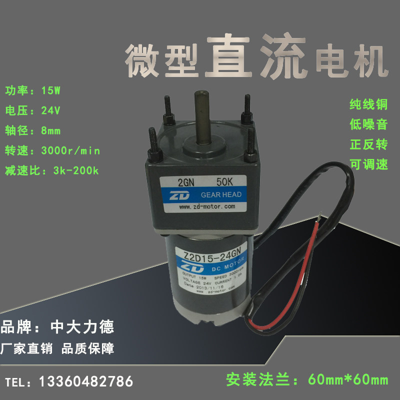 Zhongda 15W 24V micro DC brush motor Z2D15-24GN-2GN50K inkjet equipment motor