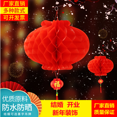 Spring Festival Paper Lantern Decoration Outdoor Festival Wedding Hanging Decoration Festive Small Red Lantern Series Honeycomb Small Paper Lantern