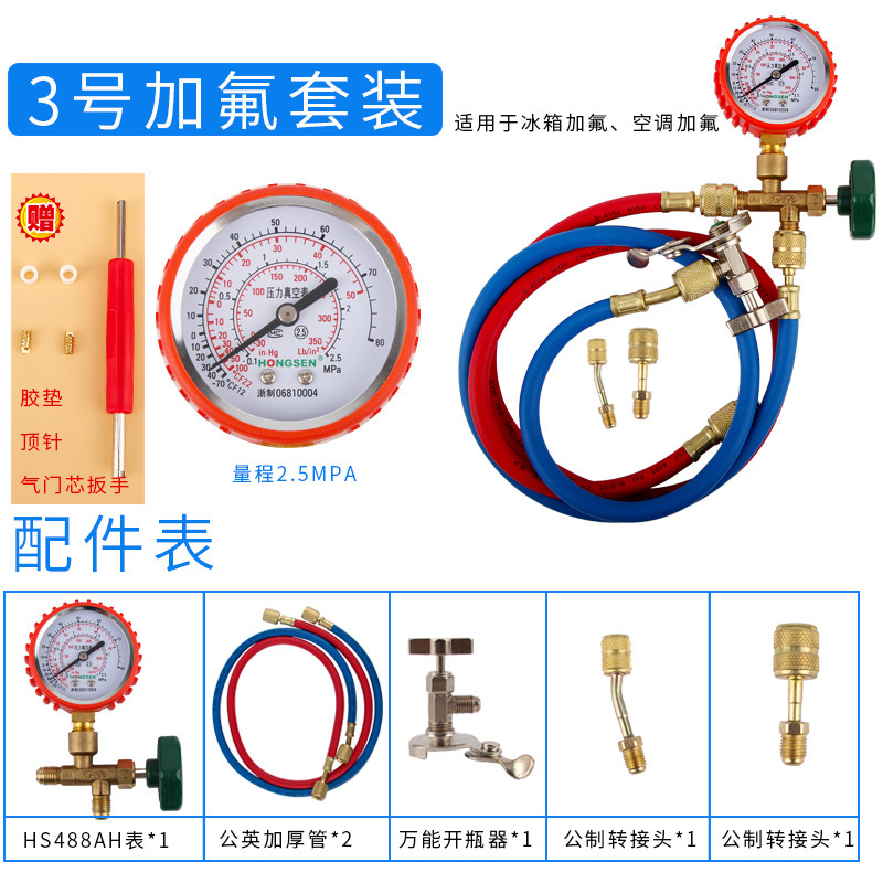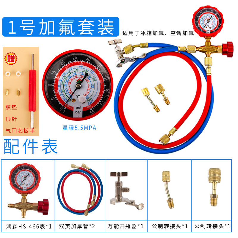 Fluoridation tool set air conditioning refrigerator snow pressure gauge refrigerant R600A R22 dosing table R134A fluorineation meter