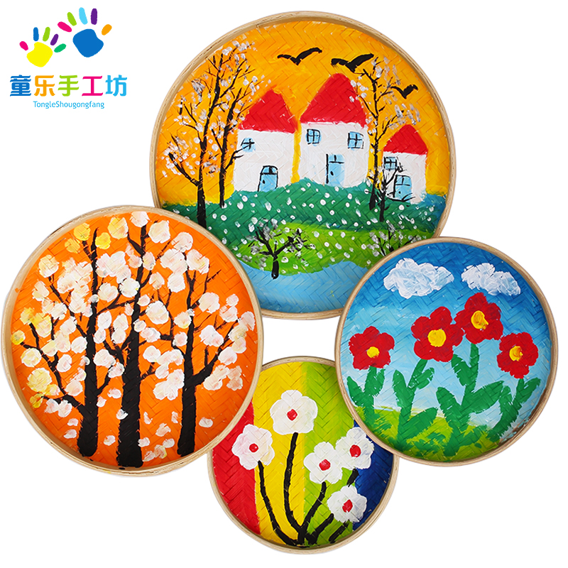 Round dustpan home small bamboo choreographic extra-large rectangular hanging decoration kindergarten handmade diy painting environment arrangement decoration-Taobao