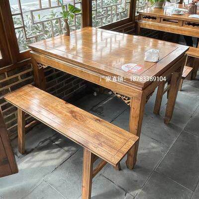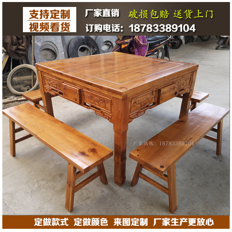 Solid wood dining room Hotel dining table and chair combination Antique carved leisure farm dining table and chair Solid wood eight immortals table and chair