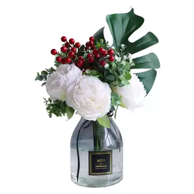 Large American glass transparent double gray vase simulation green plant leaves New Year Christmas red fruit flower table