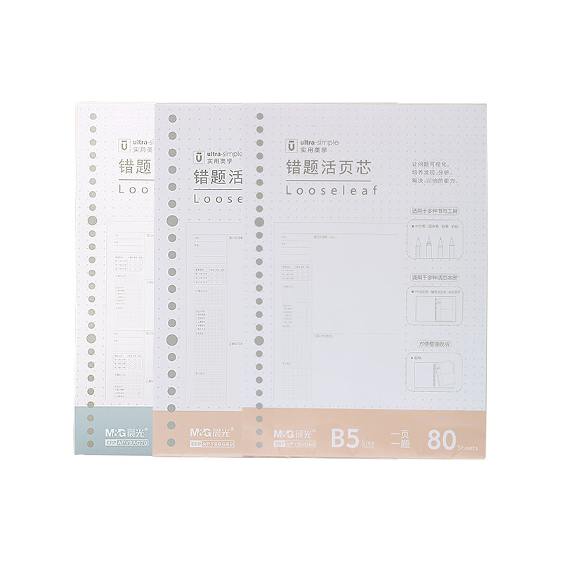 A5 20 hole 100 page horizontal line loose leaf core A5 20 hole 80 page horizontal line loose leaf core B5 26 hole 100 page horizontal line live
