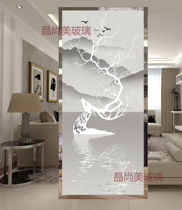 Art Glass Screen Partition Living Room Entrance Genguan Background Wall Frosted Euphotic Steel process Cairoe Deer