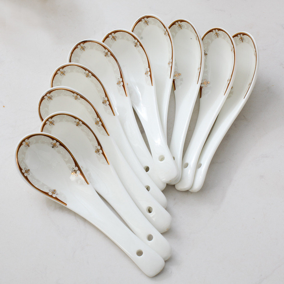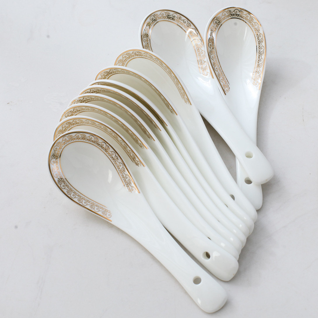 ins10 with spoon creativity Jingdezhen ceramic spoon Home Bone Porcelain Drink Soup Tablespoon Tablespoon of the Soup Spoon
