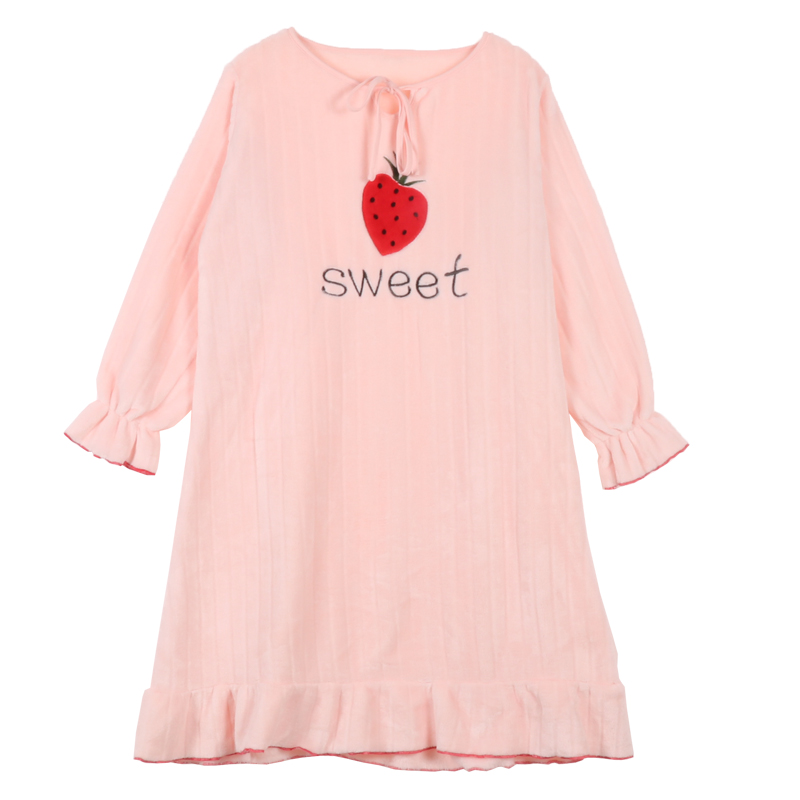 Pajamas women coral fleece autumn and winter long sleeves medium long version nightgown student cute thickened warm flannel home jacket