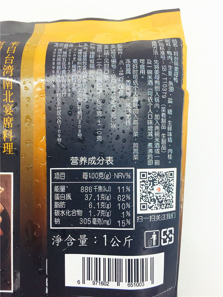Over 68 yuan Taiwan flavor Avon with the same frozen product-Wuhua Ma Qian Jin Qiu Taiwan GINGER DUCK 1000G