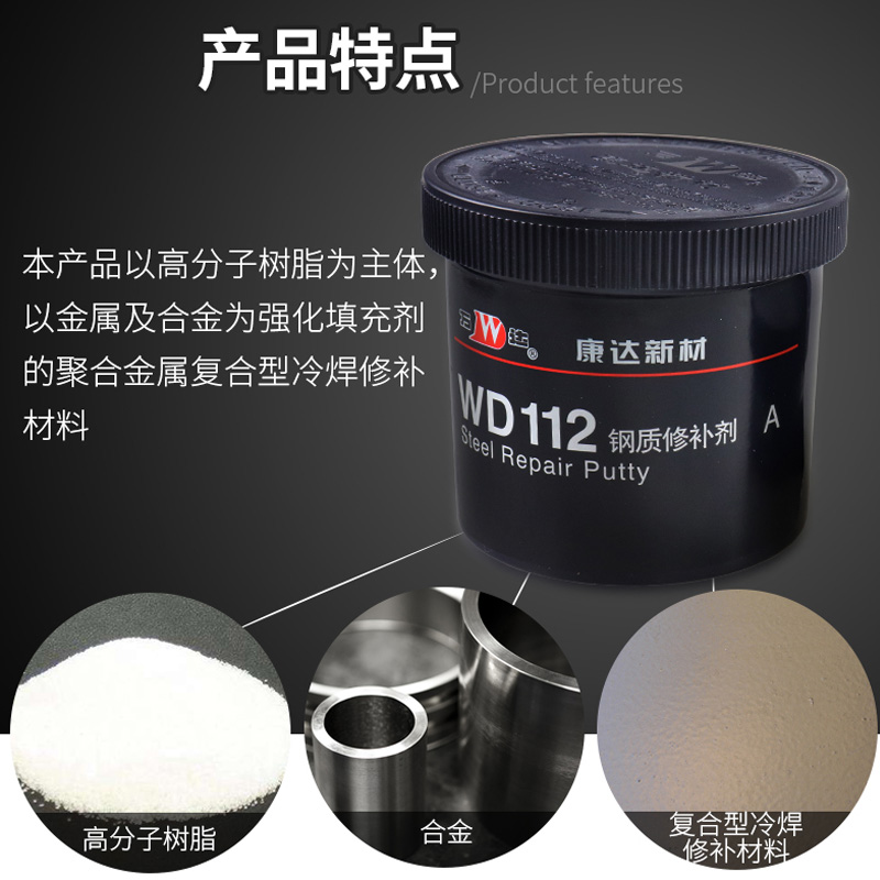 Shanghai Kangda Wanda WD112 steel repair agent carbon steel alloy steel metal stainless steel repair glue resistant to high temperature waterproof wear-resistant iron sand hole air hole crack industrial repair agent 500g
