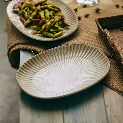Playmozhi handmade coarse pottery saucer Side dish cold braised dish Small bowl Japanese retro nostalgic oval dinner plate