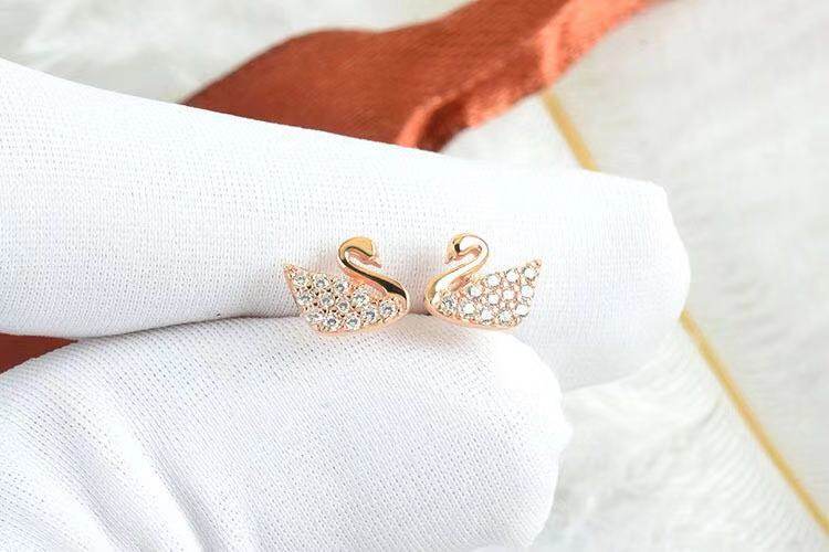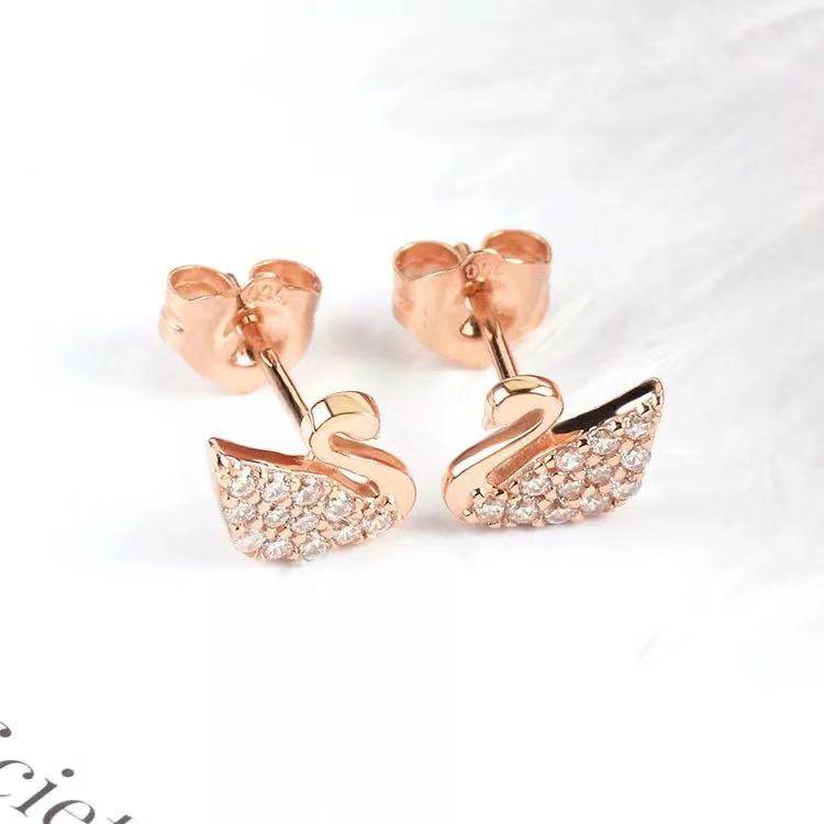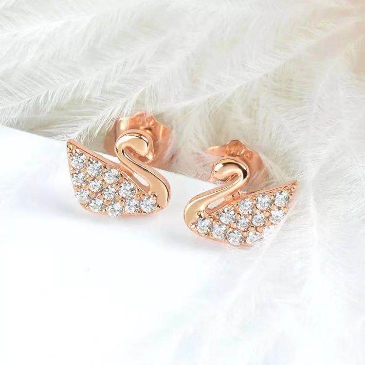 Color gold 18K rose gold little swan earrings temperament wild zirconium diamond earrings send girlfriend to girlfriend 750