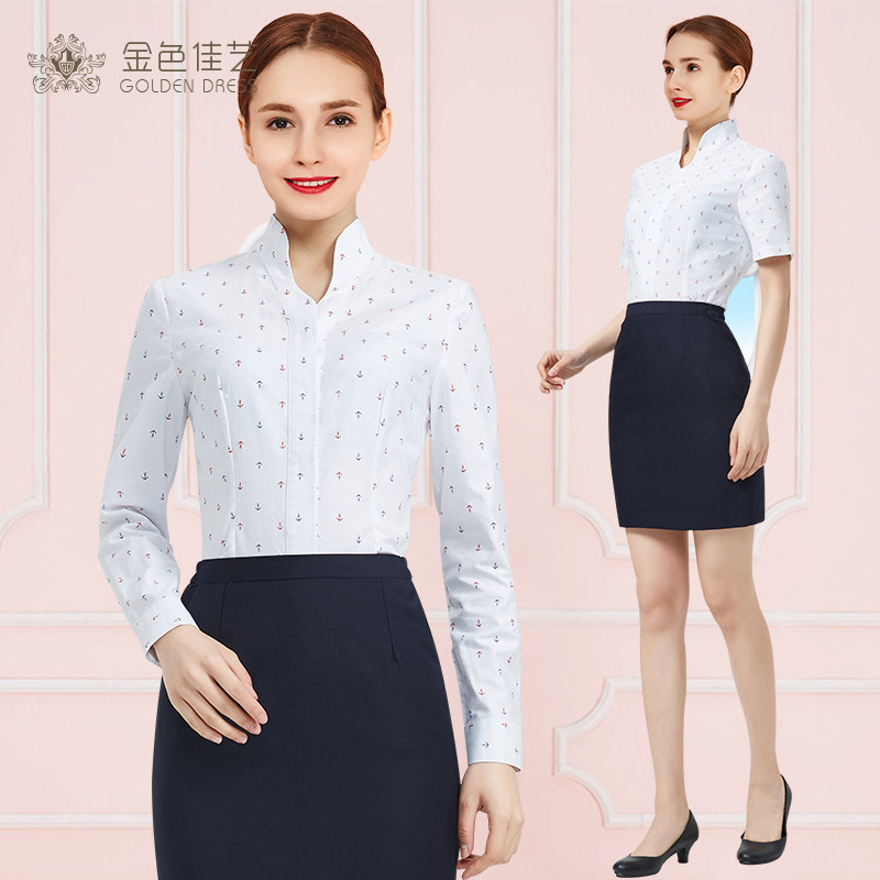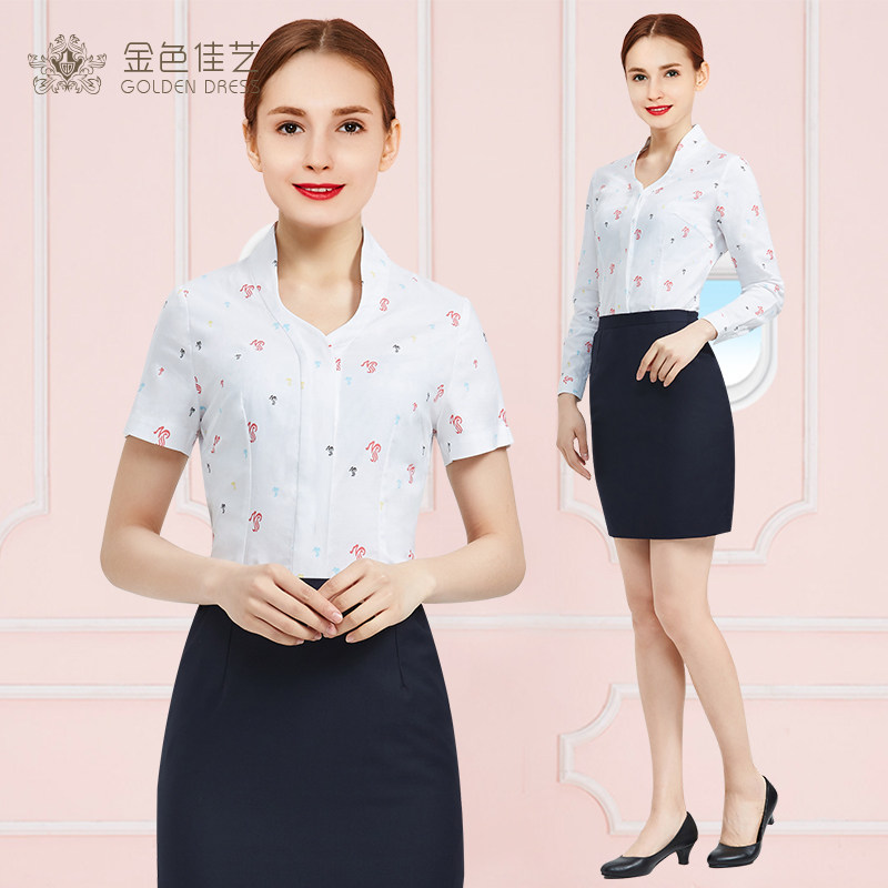Deep Air flight attendant to work in female summer sky by interview Uniform high end large and white shirt minimalist Temperament Shirt Anti Crease