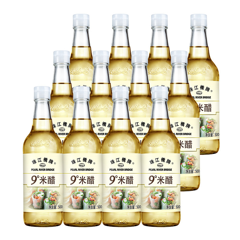 Pearl River Bridge 9 degrees Rice Vinegar Bubble Garlic 500x12 Authentic Pure Grain Brewing Nine Degrees White Vinegar Edible Whole Box Commercial