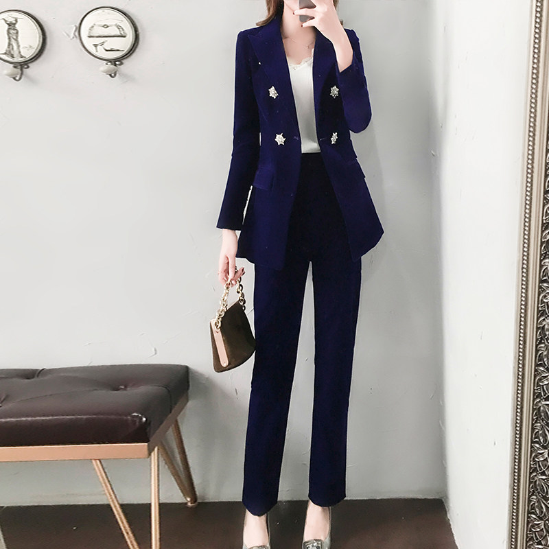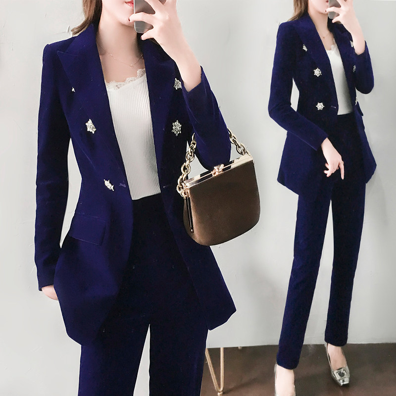 Spring Klein blue suit suit woman 2022 spring new temperament name Yuanyuan Xiaoxiang Little West suit Two sets