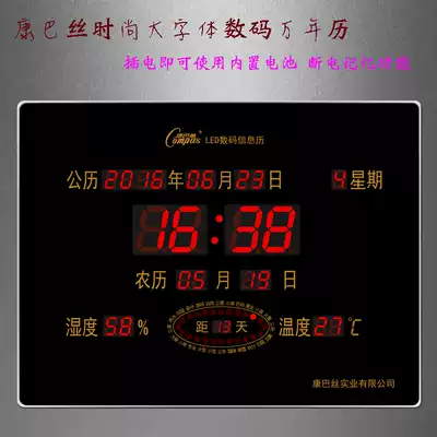 Comba Digital perpetual calendar LED electronic calendar luminous living room home silent large font fashion wall clock