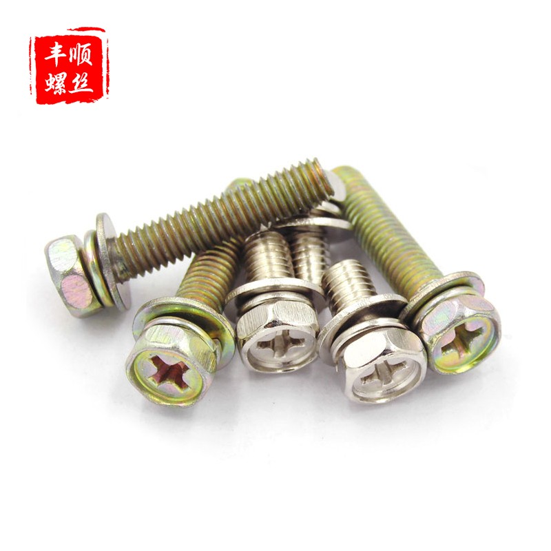 M5M6 carbon steel nickel-plated cross external hexagon triple combined screw bolt gongs * x8x10x12x16x20x30mm