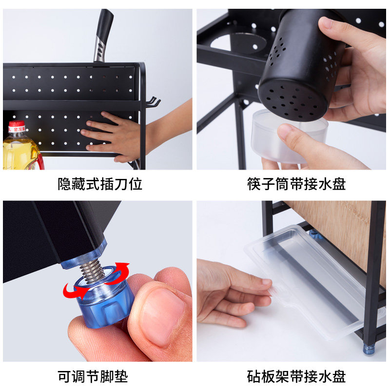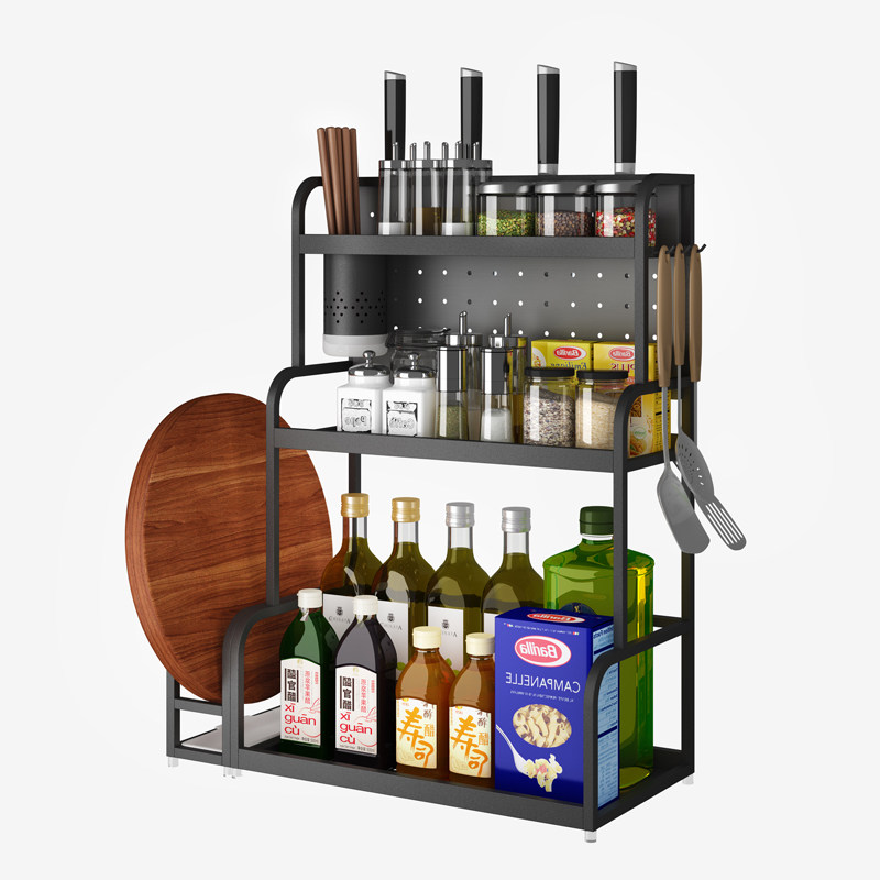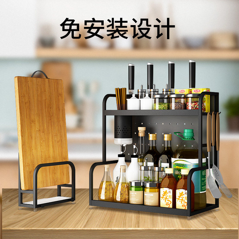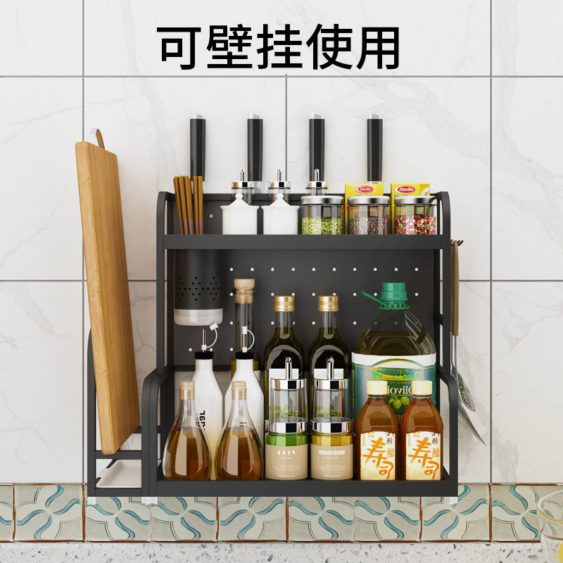 Stainless steel kitchen shelf black multi-layer storage seasoning bottle shelf wall hanging knife holder chopping board holder chopsticks tube