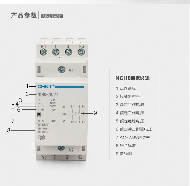 Zhengtai household contactor NCH8-20 22 220V hotel air conditioner contactor 2 open 2 closed 20A