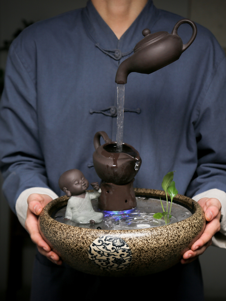Creative Minimalist Flowing Water Fountain Decorations Ceramic Fish Tank Humidifiers Home Living Room Feng Shui Strokes of Atomization Tabletop
