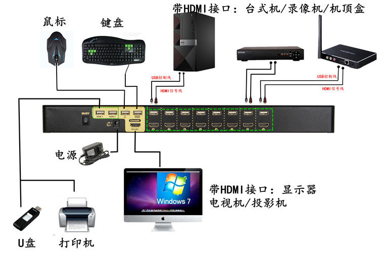 8-stage computer hosts monitor share set of mouse keyboard One display screen HDMI KVM switcher