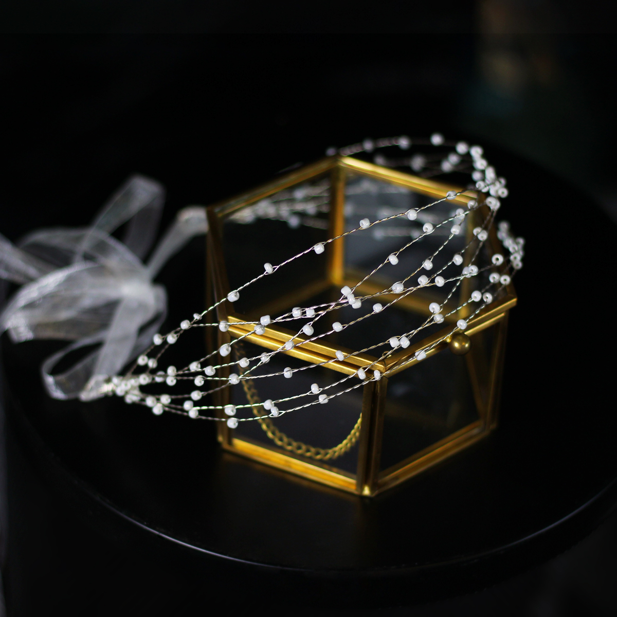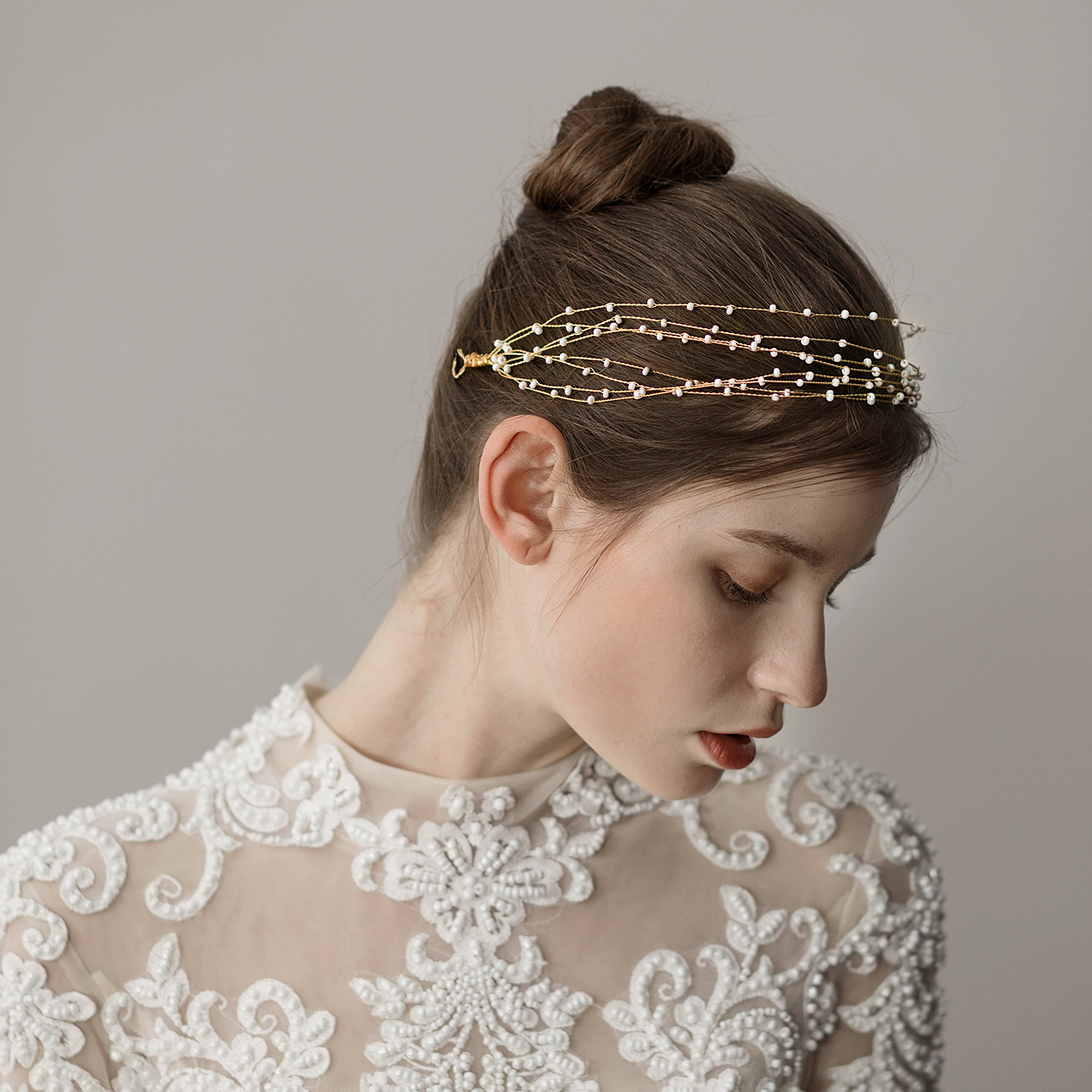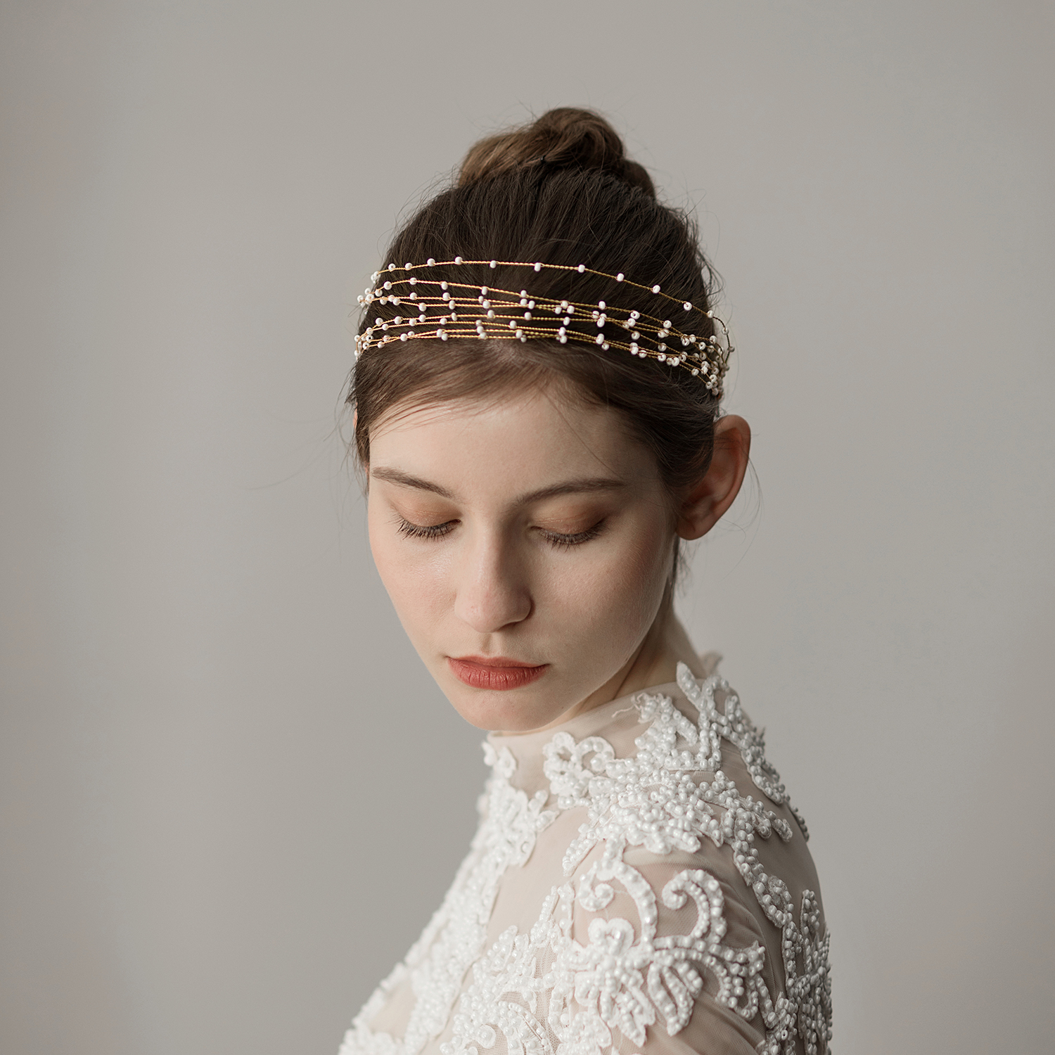 Super-fairy multilayer millet bead handmade flower ring bridal head decoration Korean style sweet and beautiful wedding yarn hair with photo gallery styled hair accessories