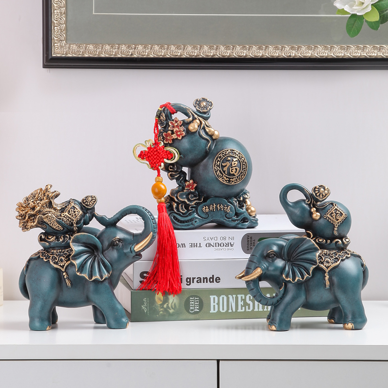 Small Fu Lu Sheng Cai elephant pair Small elephant three-piece set (send China knot) Fu Cai standard pair Fu Lu Sheng Cai pair-large three-piece set-Large single only Sheng Cai (lettuce) Large single