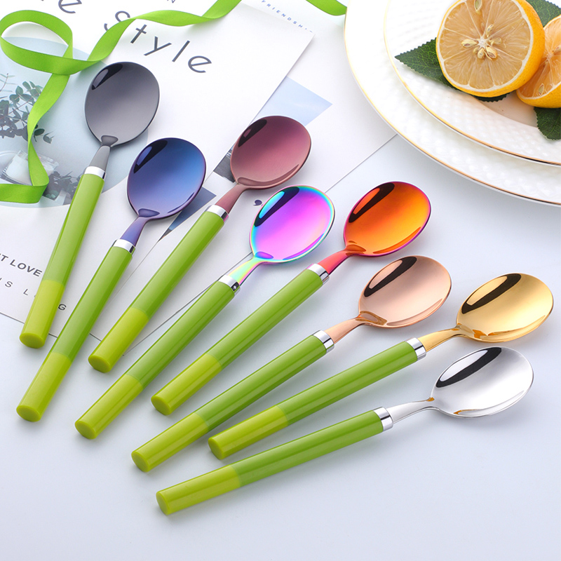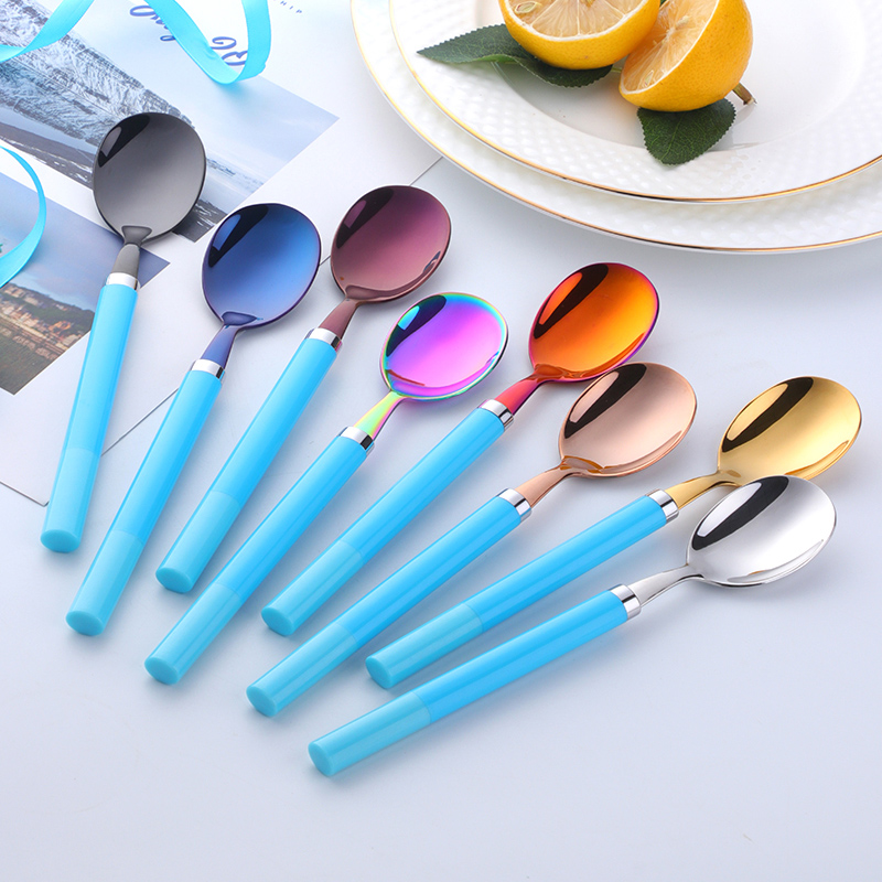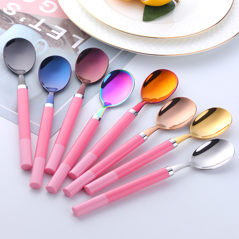 304 Stainless Steel Spoon Creative Insert Handle Bicolor Korean Spoon Cute Student Child Mix food spoon