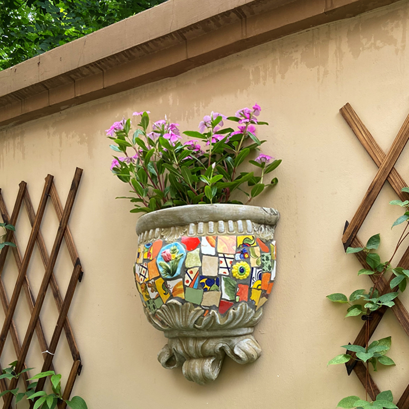 Featured mosaic painted ceramic wall hanging flowerpot practical home wall decoration