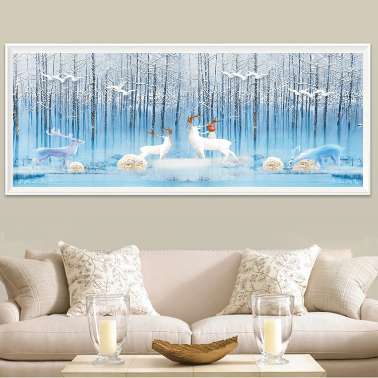 5D diamond painted brick embroidered round drill with elk cross embroidered diamond embroidered 2021 new minimalist modern living room full drill show