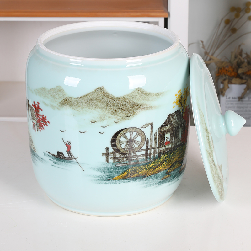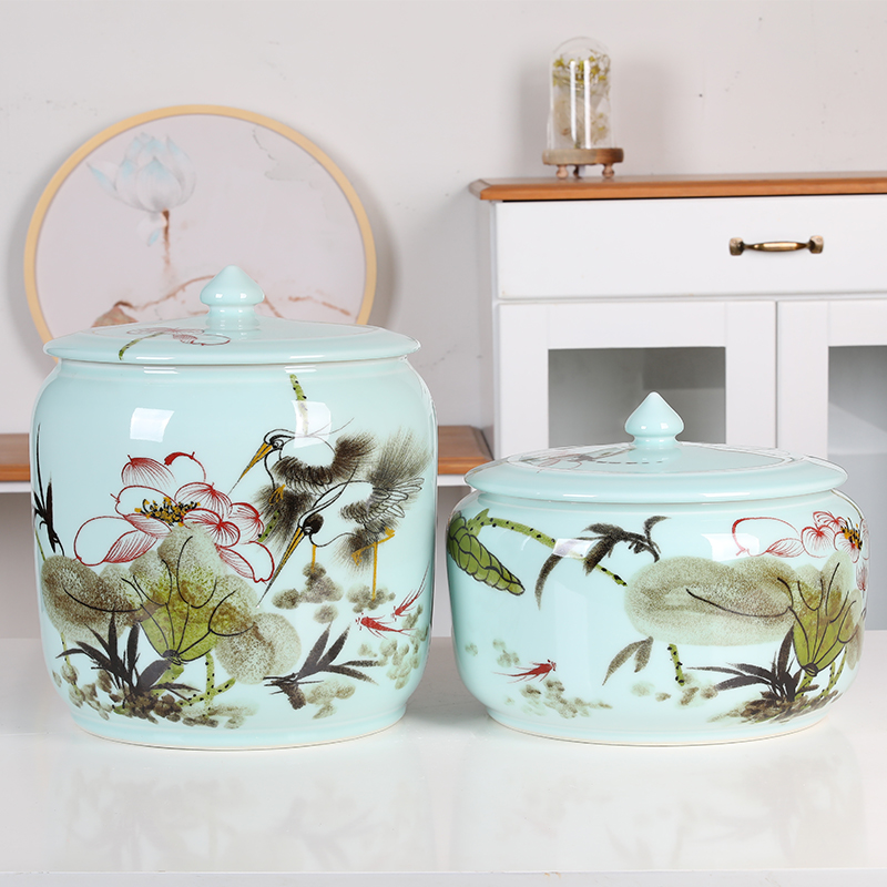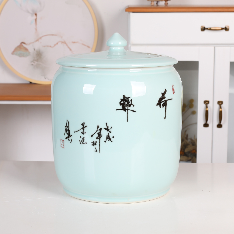 Ceramic rice cylinder with cover rice barrel 15 25 tons of flour cylinder moistureproof rice box sealed tea cylinder oil cylinder miscellaneous grain storage-Taobao