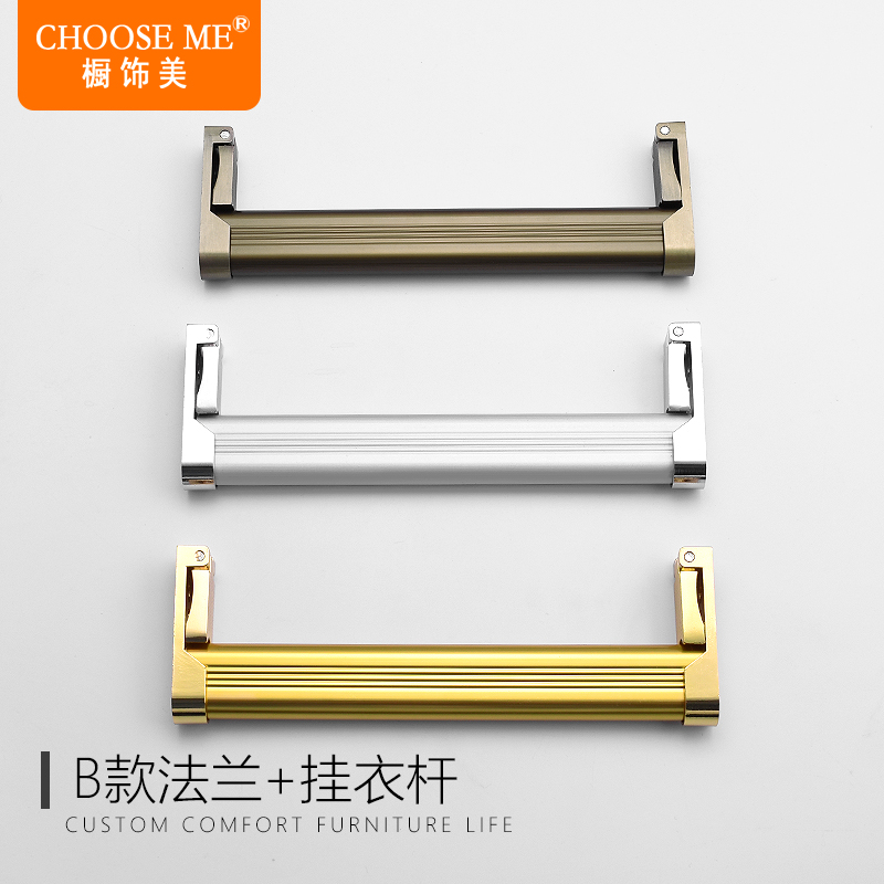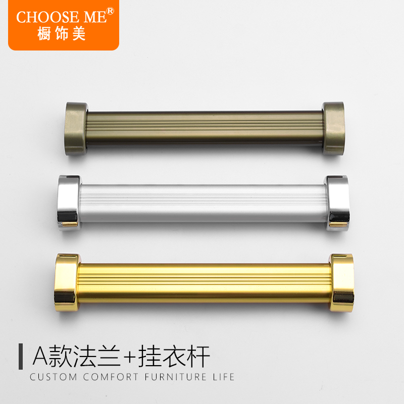 Wardrobe pole Hanging pole fixed flange Hanging hanger drying pole Wardrobe flat rod aluminum alloy Yitong wardrobe