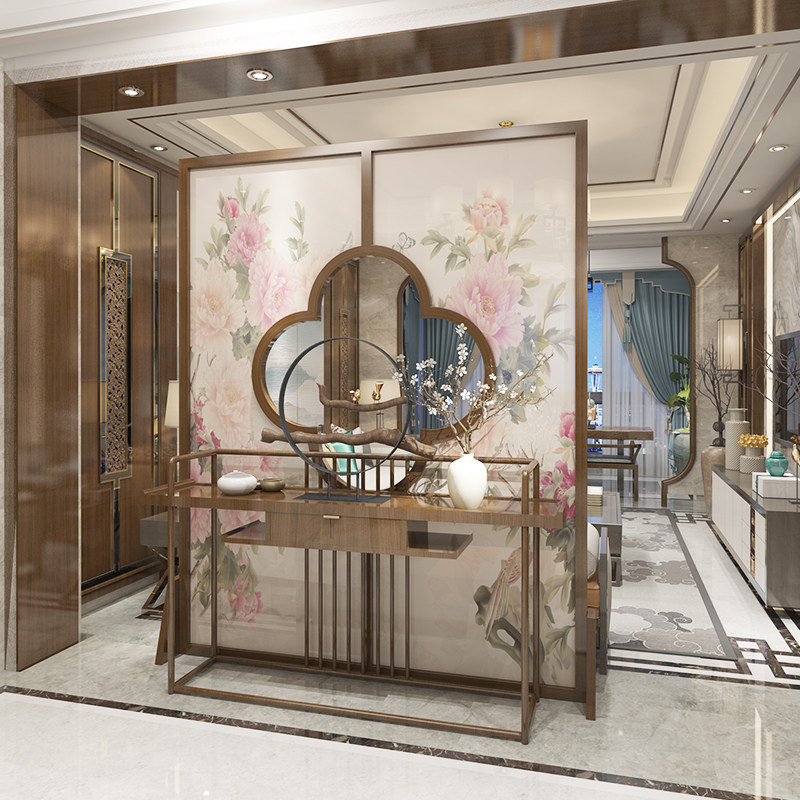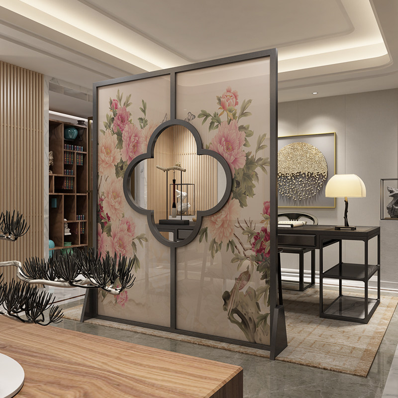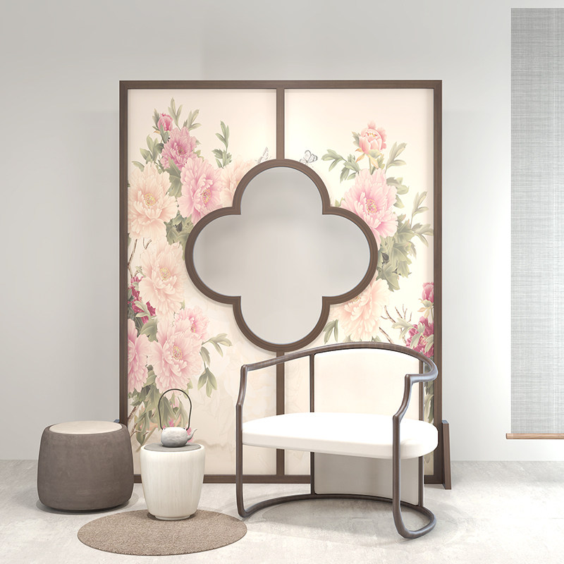 Modern New Chinese Solid Wood Genguan Partition Living Room Bedroom Flower Bird Screen Hotel Tea Social Customisable Removable Seat Screen