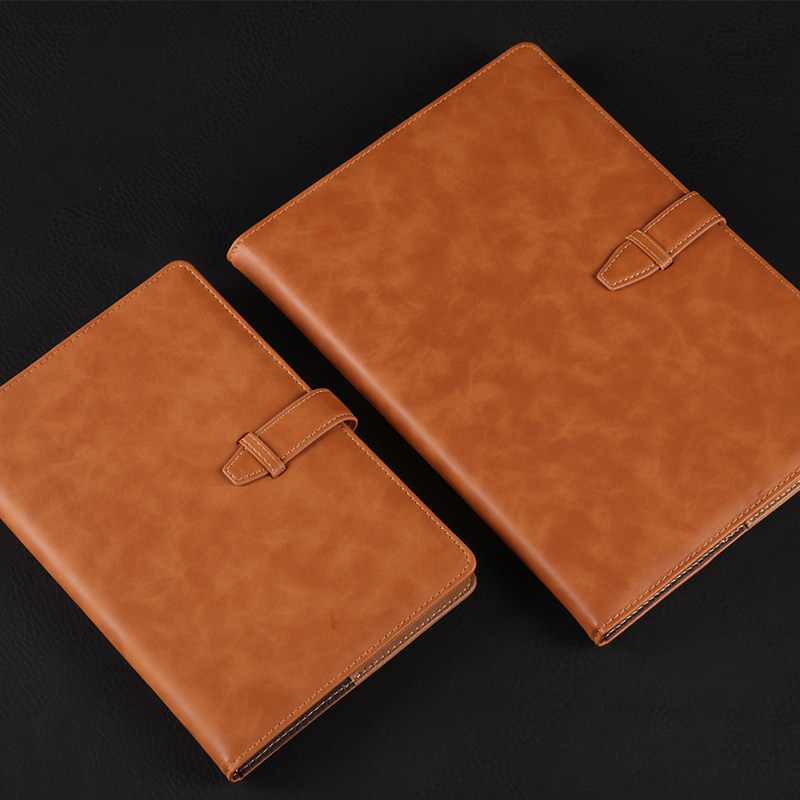 Notebook Notepad Thickened Leather Hard Belt Buckle a5 Large Business Office Meeting Record Book Simple College Students Postgraduate Entrance Examination Stationery b5 Wholesale Diary Customizable lettering logo