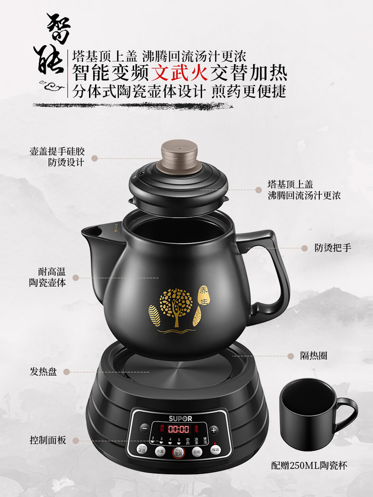 Suber Chinese medicine pot electric frying pot automatic split decoction pot household ceramic Chinese medicine electric casserole boiling medicine jar