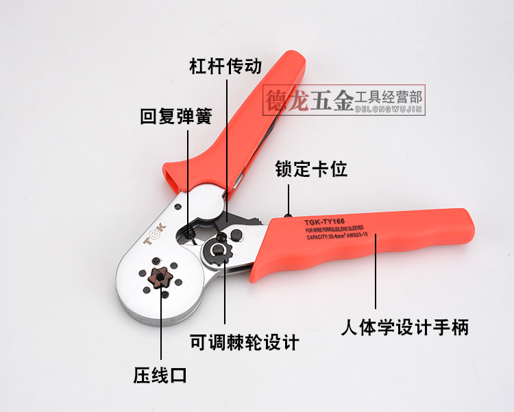 Desuo TGK-TY164 terminal crimping pliers tube type crimping pliers cold press terminal pliers 4 sides 6 side terminal pliers