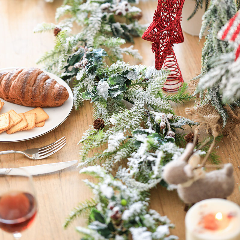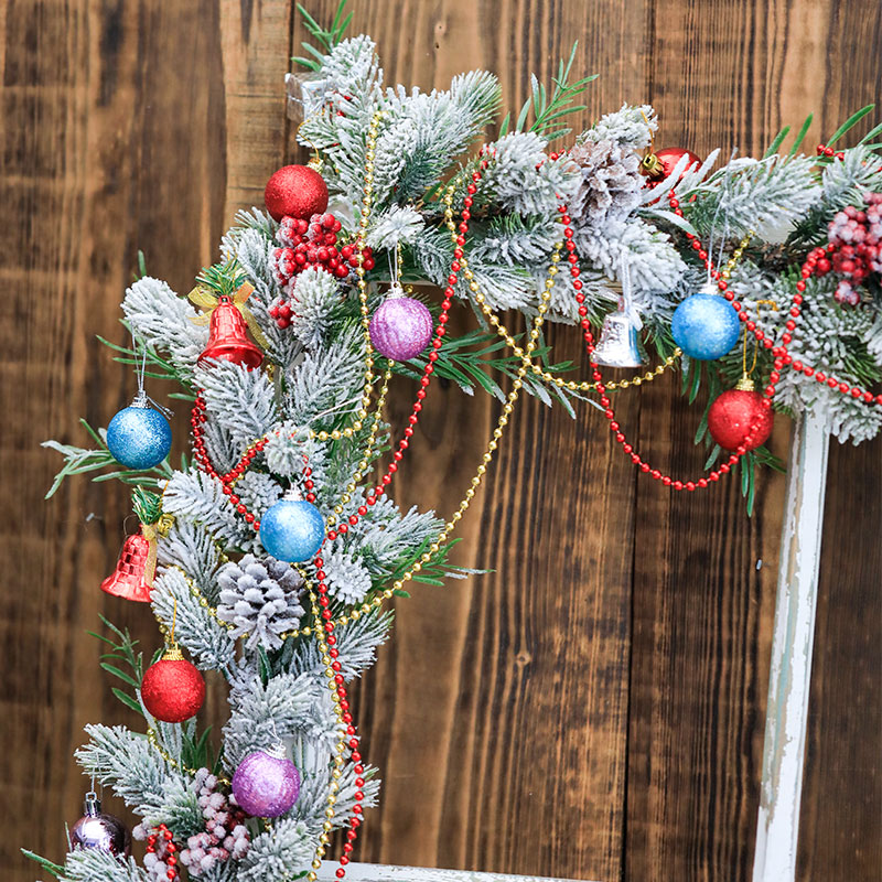 (7 Mel) Christmas Snow pine with decorative floral simulation pine needle festive ambience Scenery Props Tabletop Hanging Accessories