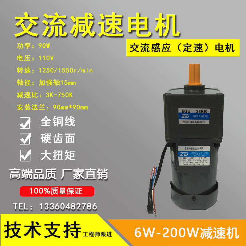 Zhongda 90W110V AC induction gear motor 5IK90GU-AF with 5GU3KB-750KB reduction gear box