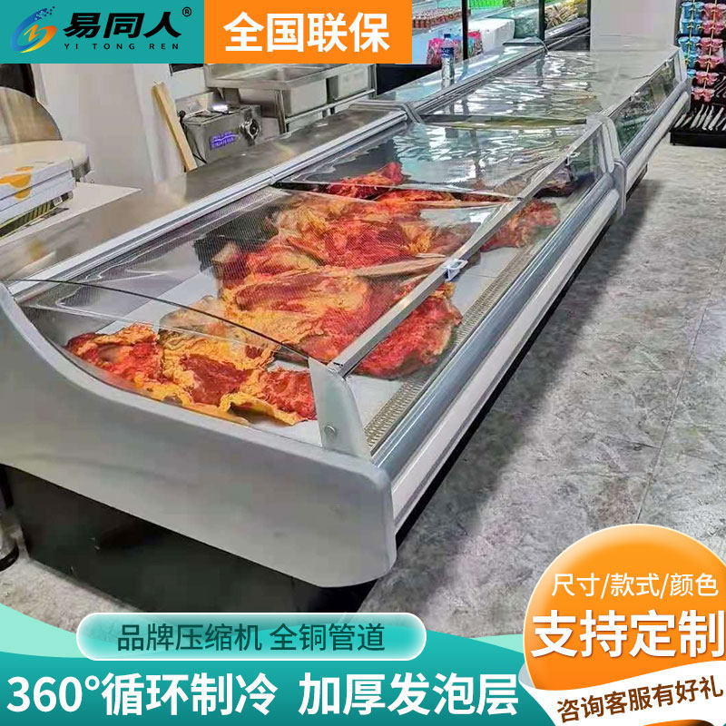 Fresh Meat Cabinet Pork Refrigerated Display Cabinet Horizontal Cold Fresh Commercial Preservation Cow Mutton Cooked Food Cabinet Supermarket Sushi Freezer