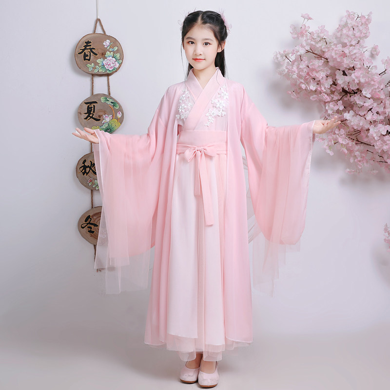 Children's Hanfu Spring and summer dress Girls super fairy light veil elegant ancient dress Fairy dress Chinese style princess dress Tang dress